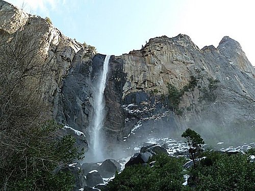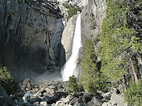 山谷到處掛滿了瀑布,最有名的是優勝美瀑布,冰川退去後,優勝美地山谷曾經多次氾濫,谷底呈一片泛濫平原,優勝美地河從中流過。