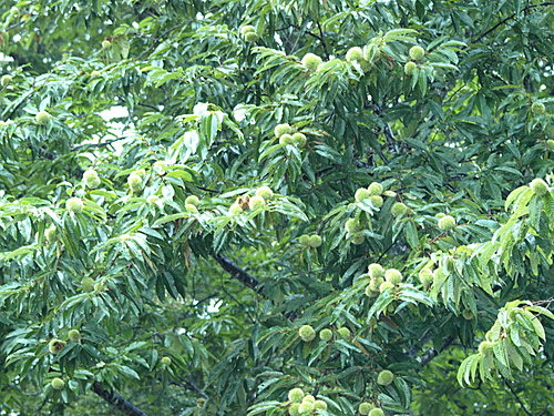 第二天天亮還是下雨,無法到處走走,飯店前就有栗子樹(くり)結實累累。
