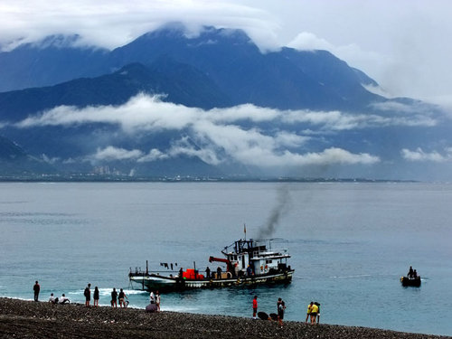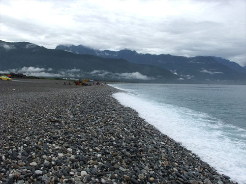 又稱月牙灣的七星潭是個湛藍的礫石海灣,