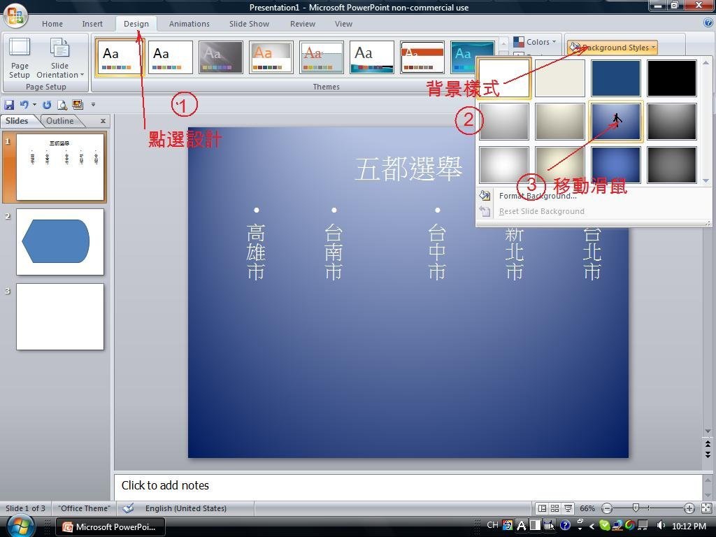 另外也可點擊設計在點選背景選取背景形式顏色等。